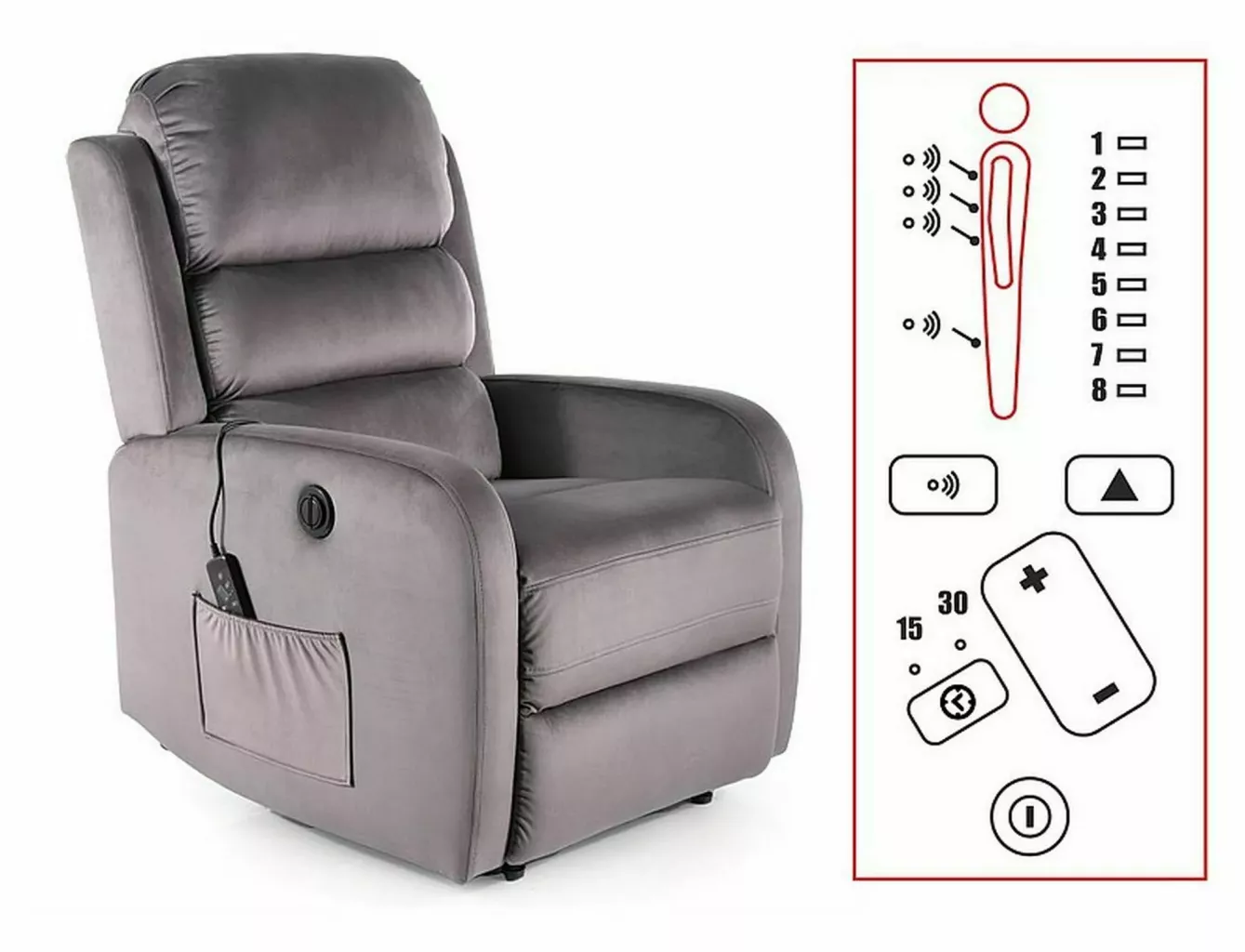 Dotaz na produkt Na splátky ještě dneselektrické polohovací křeslo s masážní funkcí, sametová látka: Bluvel, barva: šedá 14