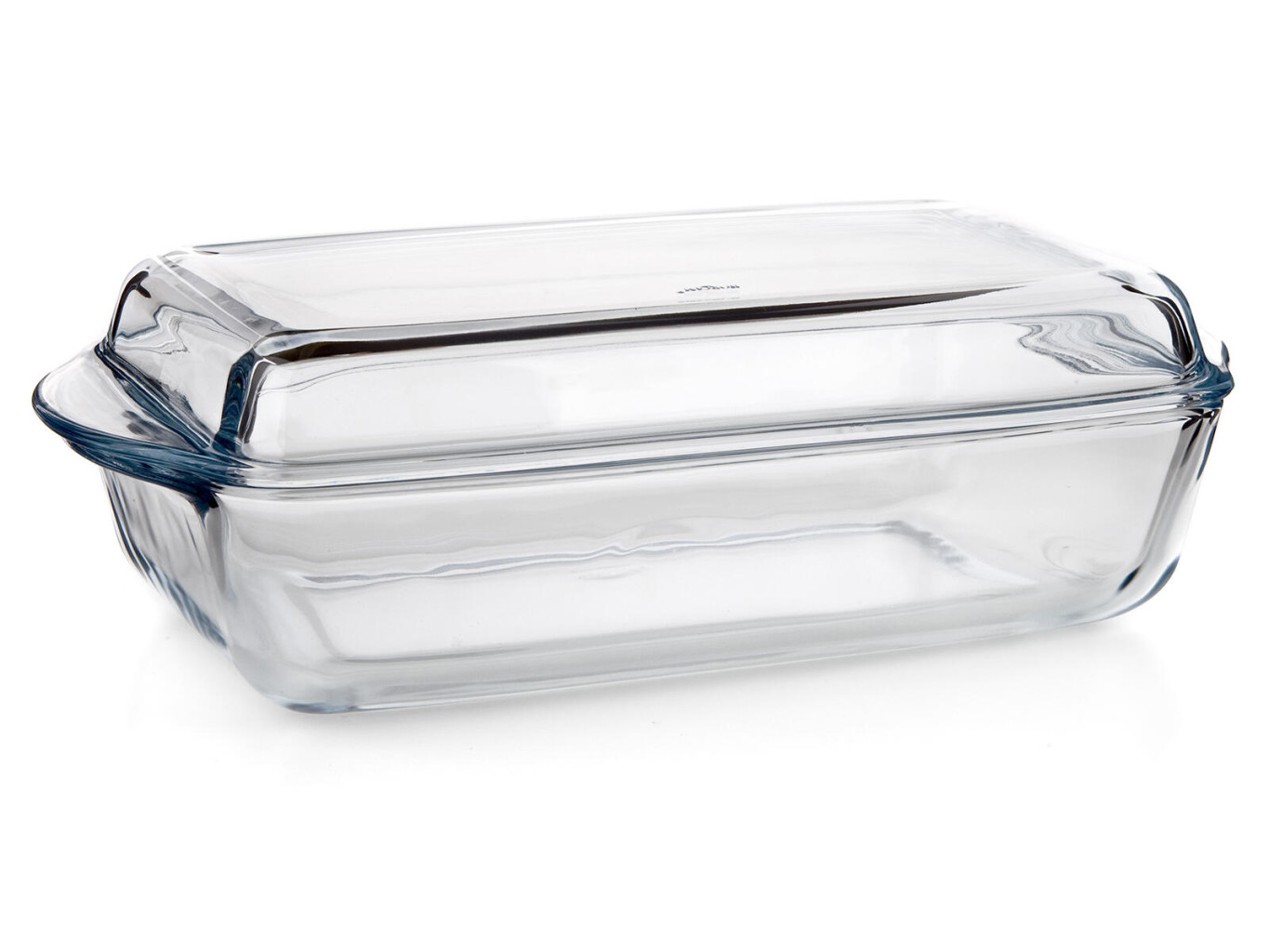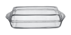 Hranatý pekáč s víkem o objemu 4,1 l (nádoba 2,8 l + víko 1,3 l) je vyroben z varného skla.