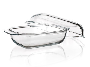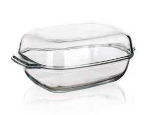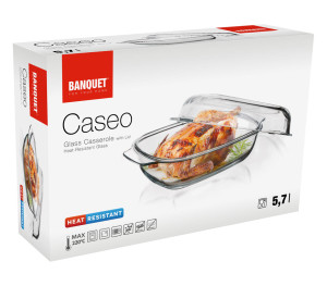 Hranatý pekáč s víkem CASEO o objemu 5,7 l (3,7 l nádoba +2 l víko) je vyroben z varného skla.