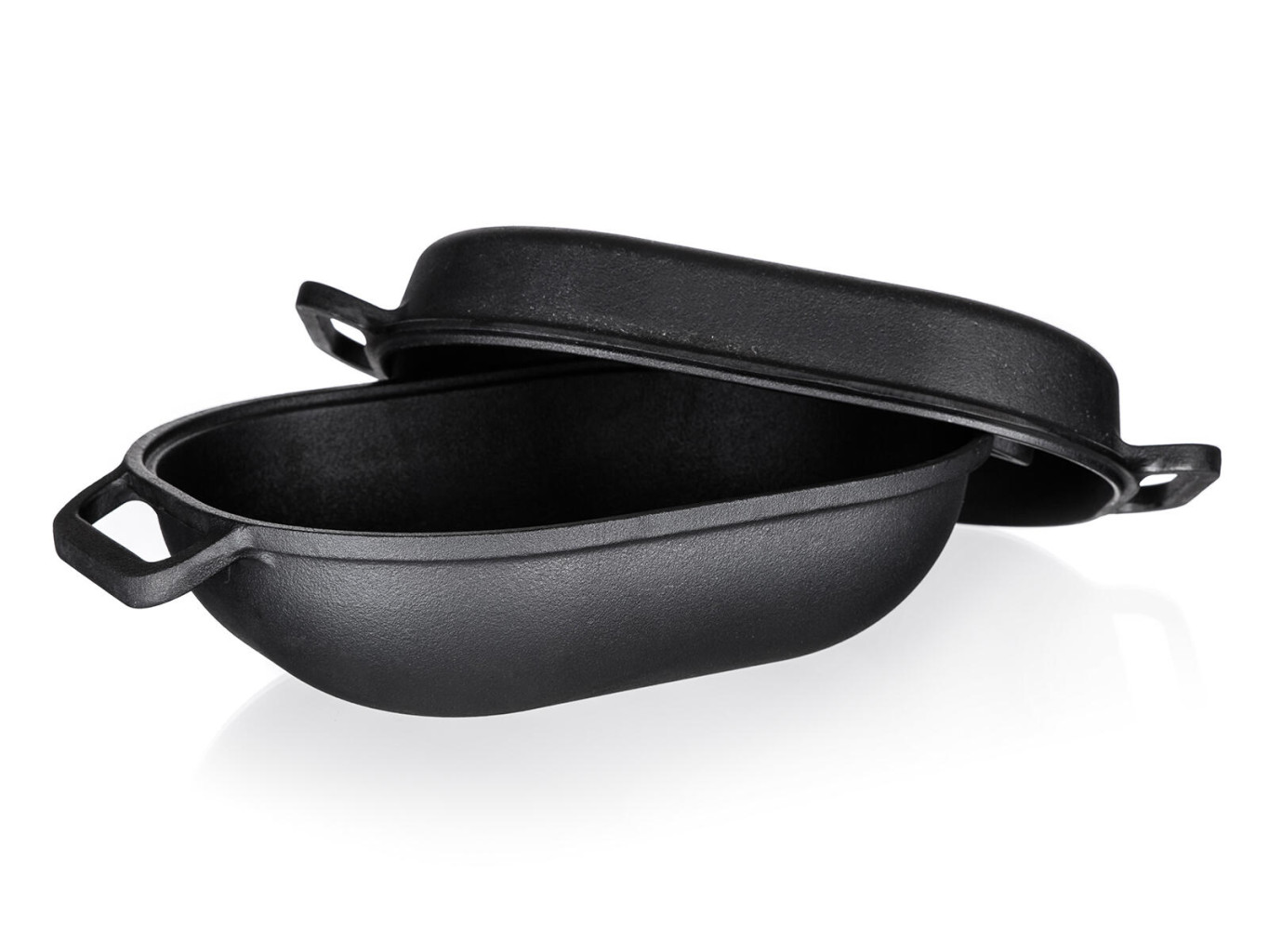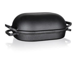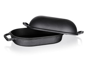 Litinový pekáč EXCELLENT s víkem, v černé barvě.