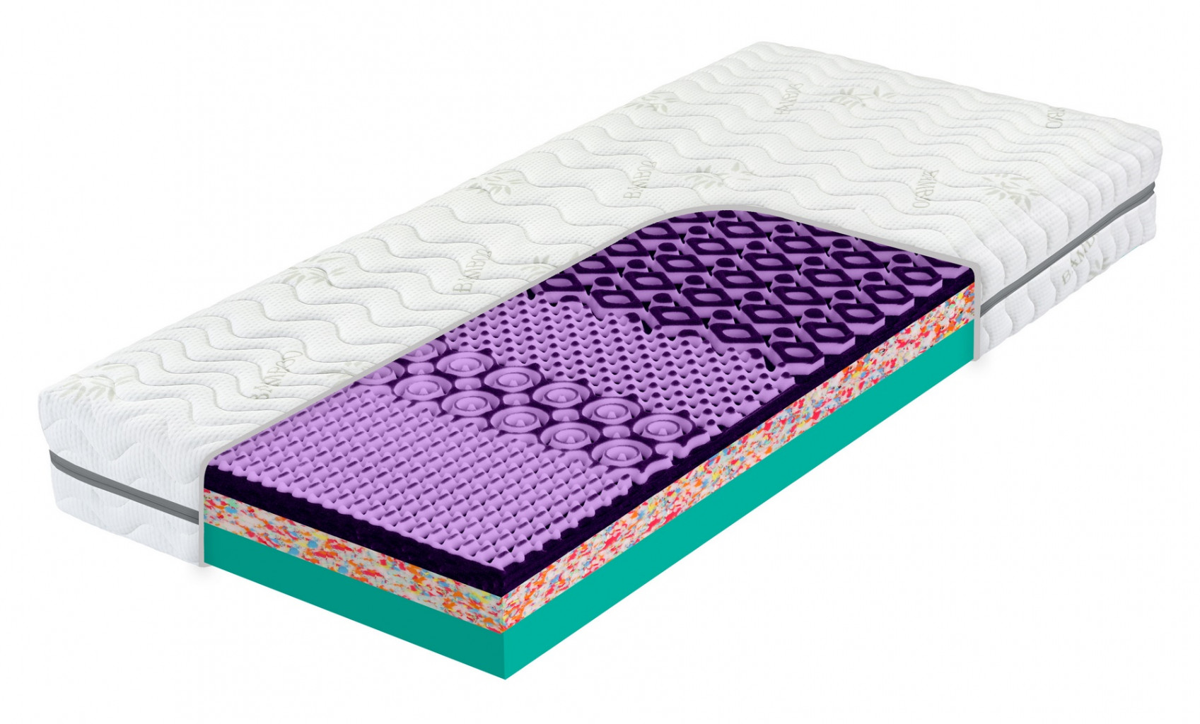 Dotaz na produkt Na splátky ještě dnesTuhá zdravotní sendvičová matrace z pružných pěn Flexifoam s 3 D Rainbow technogií a zvýšenou výškou na 22 cm. Součástí je dvojdílný antialergický potah Bamboo, pratelný na 60 °C. Výtažky vláken bambusu pomáhají vytvářet přirozené prostředí pro omezení vzniku roztočů a zamezení šíření alergenů. Výtažky z vláken bambusu navíc dobře pohlcují vlhkost. Strana „relax“ (strana HARD) s 3D Rainbow technologií je velmi příjemná, komfortní a vysoce účinná. Je o něco tužší než strana „klasik“ a nabízí 7 anatomických zón s jemným masážním účinkem pro uvolnění napjatého svalstva a podporu správného krevního oběhu v průběhu spánku, což je u tuhé matrace obzvláště důležité. Robustní, tuhý a odolný střed z eko pěny Flexifoam RekoNatura šetří přírodu i Vaši peněženku. Strana „klasik“ (strana SOFT) je masivní vrstva neprofilované Flexifoam pěny, která vyniká vysokou pružností a prodyšností. Doporučená nosnost do 140 kg. Matrace je vhodná na pevný lamelový rošt na postel o rozměrech 140x200 cm.