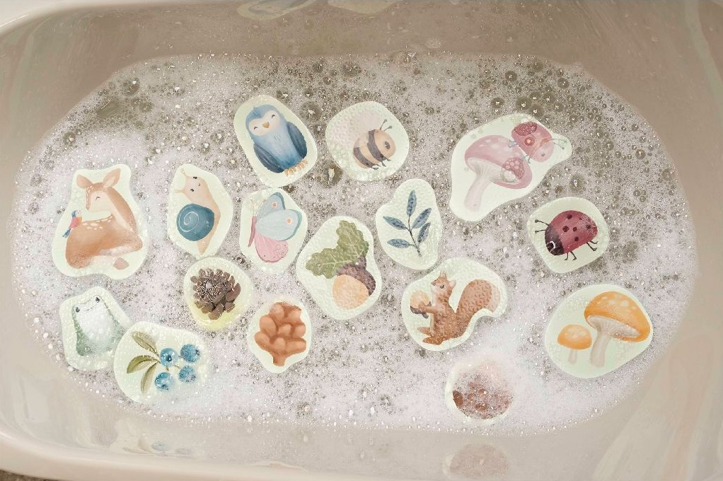 Dotaz na produktPěnové samolepky do vany s natištěnými motivy ze života v lese zabaví vaše děti při koupání ve vaně. Samolepky stačí namočit a přitisknout je na vanu. Po koupeli je snadno uložíte do síťovinového sáčku s přísavkami, který je součástí výrobku.