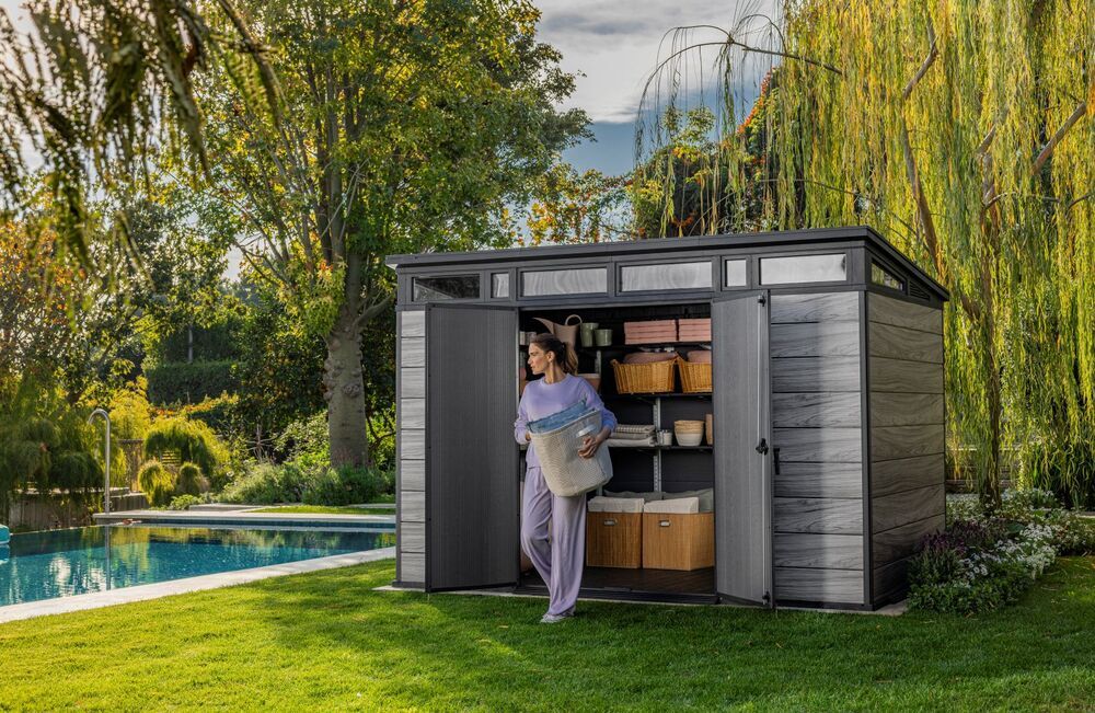 Dotaz na produkt Na splátky ještě dnesBezúdržbový domek PENT 11x7 je vyroben z jedinečného materiálu DECOCOAT, který je inspirován moderním vzhledem v imitaci dřeva. Domek má robustní konstrukci s dvojitými stěnami a kovové výztuhy. Je také vybaven pevnou designovou střechou, širokými dvojitými dveřmi a podlahou pro náročné použití s nosností 150kg na m2. Domek je ideální nejen na uschovávání nářadí a zahradních doplňků, ale také na sekačku nebo grill. Jeho hlavní výhody jsou stabilní, zpevněná ocelová konstrukce, pevná střecha a široké dvojité dveře. Všechny domky Keter jsou vybaveny vysoce odolnou podlahou. Zatížení střechy až 150 kg/m2, odolnost vůči větru do 145 km/hod (platí v případě ukotvení). Rozměr dveří: 140x182 cm výhody:- Dvojitá stěna odolná proti povětrnostním vlivům s ocelovou výztuží- Unikátní stěny DECOCOAT- Široké dvojité dveře, viktoriánské okno a světlíky- Vysoká podlaha- Robustní strop- Vysoký strop- Zajišťovací systém (zámek není součástí dodávky) 10 let záruka - Výrobce KETER poskytuje desetiletou záruku na výrobní vady plastových domků.