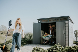 Dotaz na produkt Na splátky ještě dnesBezúdržbový domek PENT 9x7 je vyroben z jedinečného materiálu DECOCOAT, který je inspirován moderním vzhledem v imitaci dřeva. Domek má robustní konstrukci s dvojitými stěnami a kovové výztuhy. Je také vybaven pevnou designovou střechou, širokými dvojitými dveřmi a podlahou pro náročné použití s nosností 150kg na m2. Domek je ideální nejen na uschovávání nářadí a zahradních doplňků, ale také na sekačku nebo grill. Jeho hlavní výhody jsou stabilní, zpevněná ocelová konstrukce, pevná střecha a široké dvojité dveře. Všechny domky Keter jsou vybaveny vysoce odolnou podlahou. Zatížení střechy až 150 kg/m2, odolnost vůči větru do 145 km/hod (platí v případě ukotvení). Rozměr dveří: 140x182 cm výhody:- Dvojitá stěna odolná proti povětrnostním vlivům s ocelovou výztuží- Unikátní stěny DECOCOAT- Široké dvojité dveře, viktoriánské okno a světlíky- Vysoká podlaha- Robustní strop- Vysoký strop- Zajišťovací systém (zámek není součástí dodávky) 10 let záruka - Výrobce KETER poskytuje desetiletou záruku na výrobní vady plastových domků.