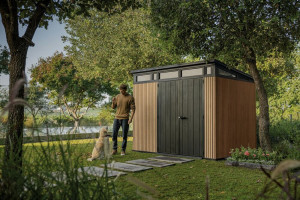 Dotaz na produkt Na splátky ještě dnesBezúdržbový domek PENT 9x7 je vyroben z jedinečného materiálu DECOCOAT, který je inspirován moderním vzhledem v imitaci dřeva. Domek má robustní konstrukci s dvojitými stěnami a kovové výztuhy. Je také vybaven pevnou designovou střechou, širokými dvojitými dveřmi a podlahou pro náročné použití s nosností 150kg na m2. Domek je ideální nejen na uschovávání nářadí a zahradních doplňků, ale také na sekačku nebo grill. Jeho hlavní výhody jsou stabilní, zpevněná ocelová konstrukce, pevná střecha a široké dvojité dveře. Všechny domky Keter jsou vybaveny vysoce odolnou podlahou. Zatížení střechy až 150 kg/m2, odolnost vůči větru do 145 km/hod (platí v případě ukotvení). Rozměr dveří: 140x182 cm výhody:- Dvojitá stěna odolná proti povětrnostním vlivům s ocelovou výztuží- Unikátní stěny DECOCOAT- Široké dvojité dveře, viktoriánské okno a světlíky- Vysoká podlaha- Robustní strop- Vysoký strop- Zajišťovací systém (zámek není součástí dodávky)