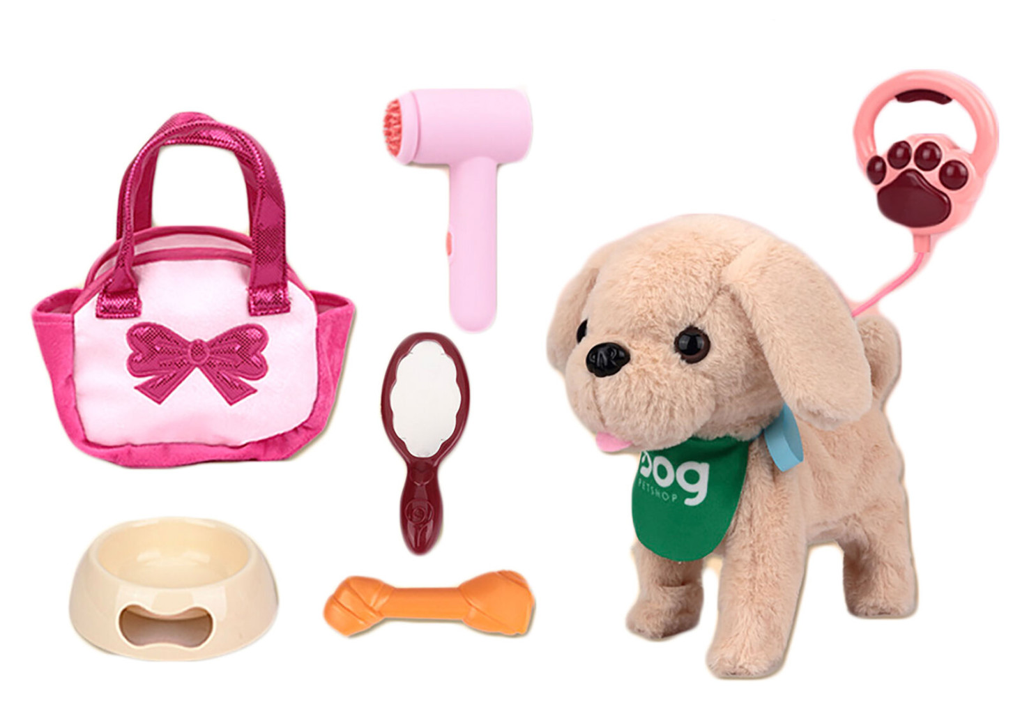 Dotaz na produktPes chodící na vodítku s funkcemi. Kabelové ovládání. Velikost 25 cm. Zvukové efekty. Dotyk psa - chodí, vrtí ocasem, štěká. Zatleskání - vrtí ocasem, naříká, opětovný potlesk - chodí, vrtí ocasem, štěká. Tlačítko na levém boku psa - hudba, chůze, vrtění ocasem, opětovný stisk - hudba, chůze, vrtění ocasem. Držení tlačítka - opakuje co říkám, ukončení dotykem hlavy. Vodítko - stisk tlačítka - hudba, chůze, vrtění ocasem, opětovný tisk změna hudby. 3xAA baterie do psa ze spodní strany nejsou součástí. Přepínač ON/OFF na spodní straně psa. Sundavací plyšový potah psa k vyčištění. Součástí miska, kost, kartáč, fén, taška.