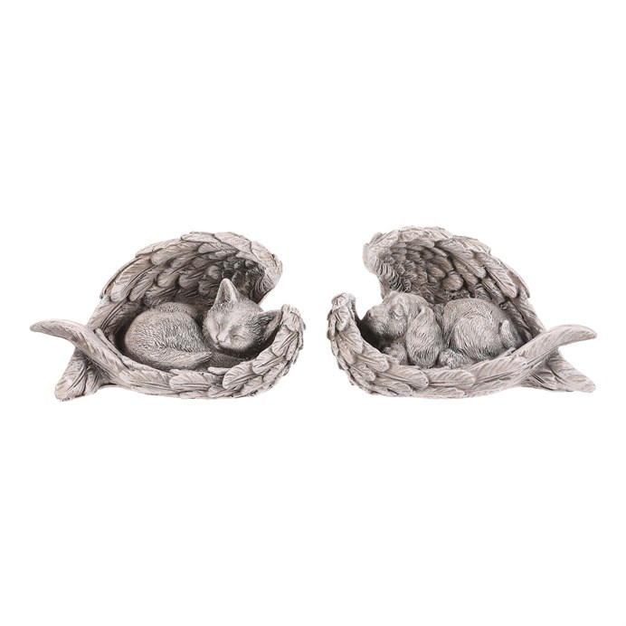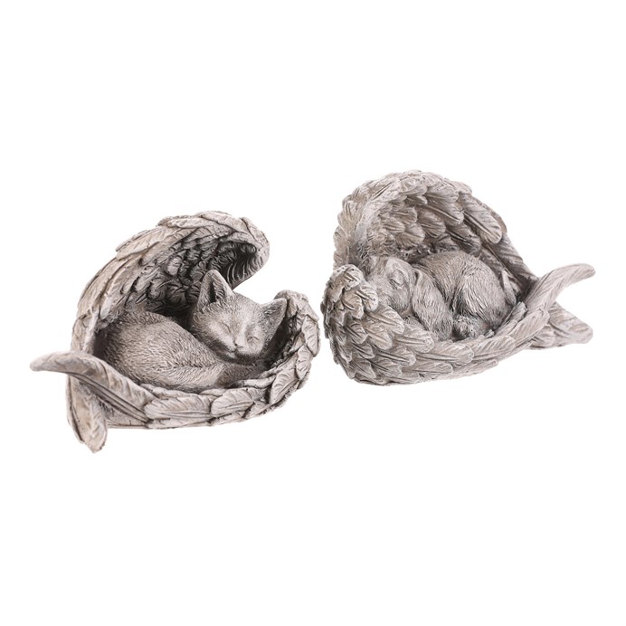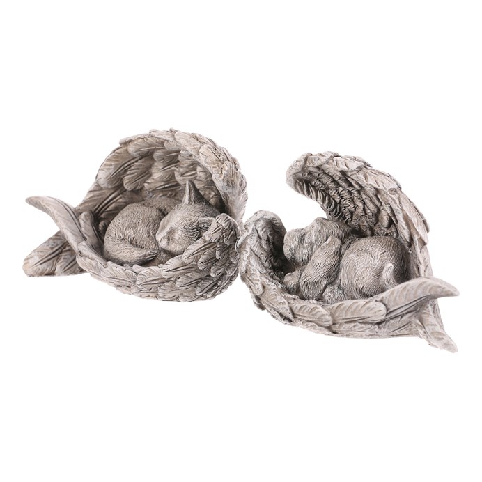 Dotaz na produktDojemná pietní dekorace zachycuje psa nebo kočku v ochranných andělských křídlech jako symbol věčné vzpomínky. Šedé provedení z polyresinu působí vkusně a důstojně. Krásná připomínka milovaného mazlíčka, vhodná pro pietní místa i domácí vzpomínkový koutek. Cena je uvedena za 1 kus.
