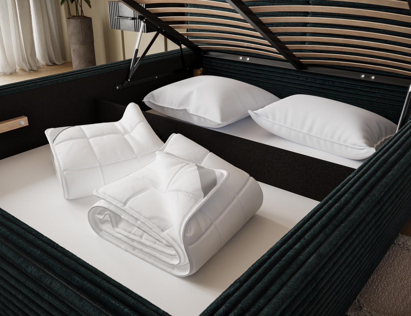 Dotaz na produkt Na splátky ještě dnesLožnicová postel Pesillo kombinuje eleganci a funkčnost v moderním designu. Model je k dispozici ve třech velikostních variantách: 140x200 cm, 160x200 cm a 180x200 cm, což vám umožní dokonale přizpůsobit postel rozměrům vaší ložnice a vašim individuálním potřebám. Celková výška postele je 103 cm, zatímco její hloubka měří 220 cm. Šířka závisí na vybraném modelu a je 158 cm, 178 cm nebo 198 cm. Pěnová výplň T2130 zajišťuje pohodlí a odolnost, zatímco robustní černé plastové nohy nábytku poskytují stabilitu a elegantní vzhled. Postel Pesillo je vybavena praktickým boxem na ložní prádlo, který umožňuje efektivní využití prostoru a snadnou organizaci. Navrženo v moderním stylu, dokonale zapadá do současných trendů interiérového designu a vytváří útulnou a elegantní atmosféru ideální pro relaxaci.Látky: Modullo 35