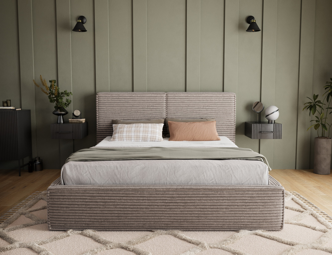 Dotaz na produkt Na splátky ještě dnesLožnicová postel Pesillo kombinuje eleganci a funkčnost v moderním designu. Model je k dispozici ve třech velikostních variantách: 140x200 cm, 160x200 cm a 180x200 cm, což vám umožní dokonale přizpůsobit postel rozměrům vaší ložnice a vašim individuálním potřebám. Celková výška postele je 103 cm, zatímco její hloubka měří 220 cm. Šířka závisí na vybraném modelu a je 158 cm, 178 cm nebo 198 cm. Pěnová výplň T2130 zajišťuje pohodlí a odolnost, zatímco robustní černé plastové nohy nábytku poskytují stabilitu a elegantní vzhled. Postel Pesillo je vybavena praktickým boxem na ložní prádlo, který umožňuje efektivní využití prostoru a snadnou organizaci. Navrženo v moderním stylu, dokonale zapadá do současných trendů interiérového designu a vytváří útulnou a elegantní atmosféru ideální pro relaxaci.Látky: Modullo 20