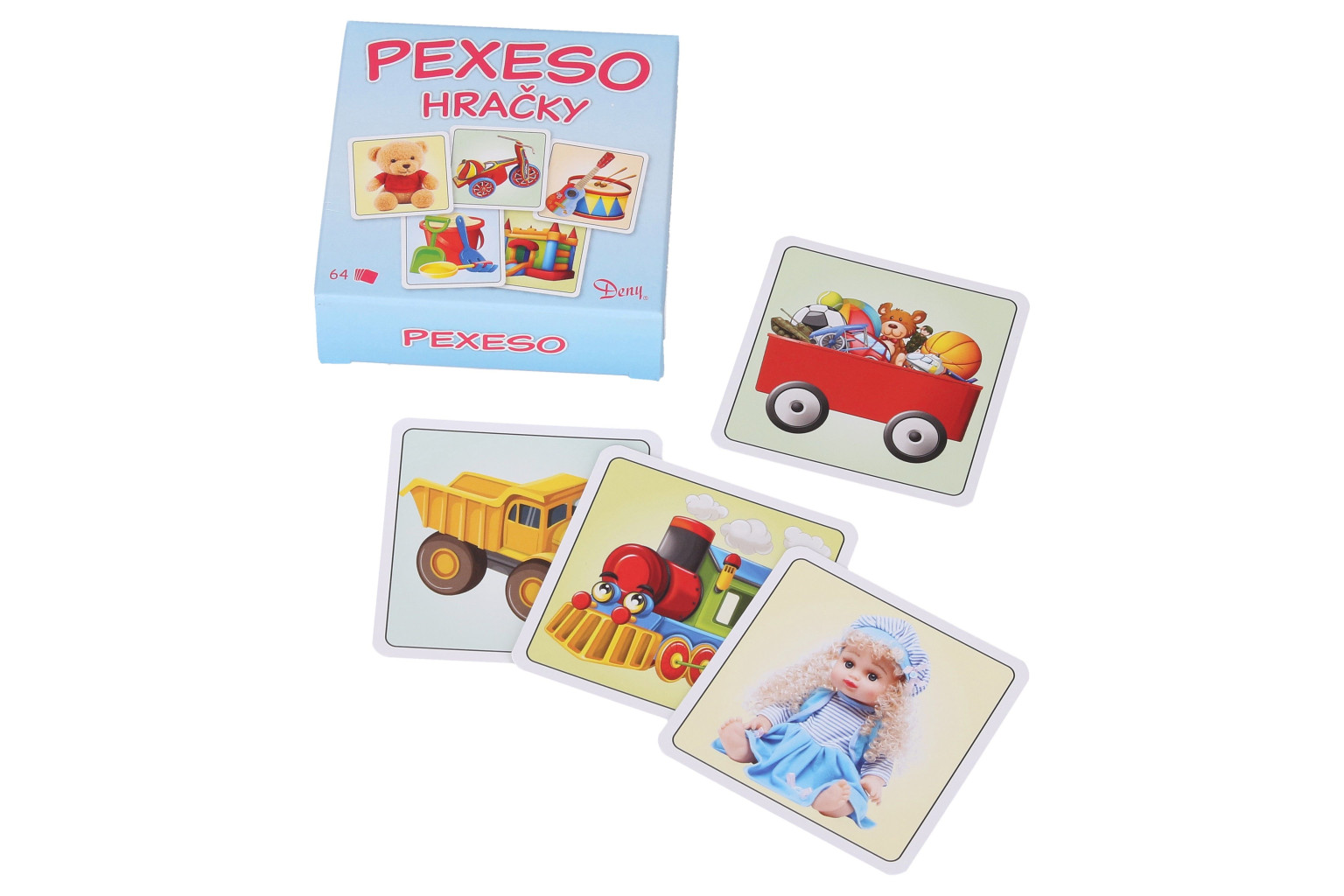 Dotaz na produktPexeso Hračky v krabičce. Balení obsahuje 64 karet (32 párů) + 2 karty s pravidly. Rozměr krabičky 8x8x2,5 cm.