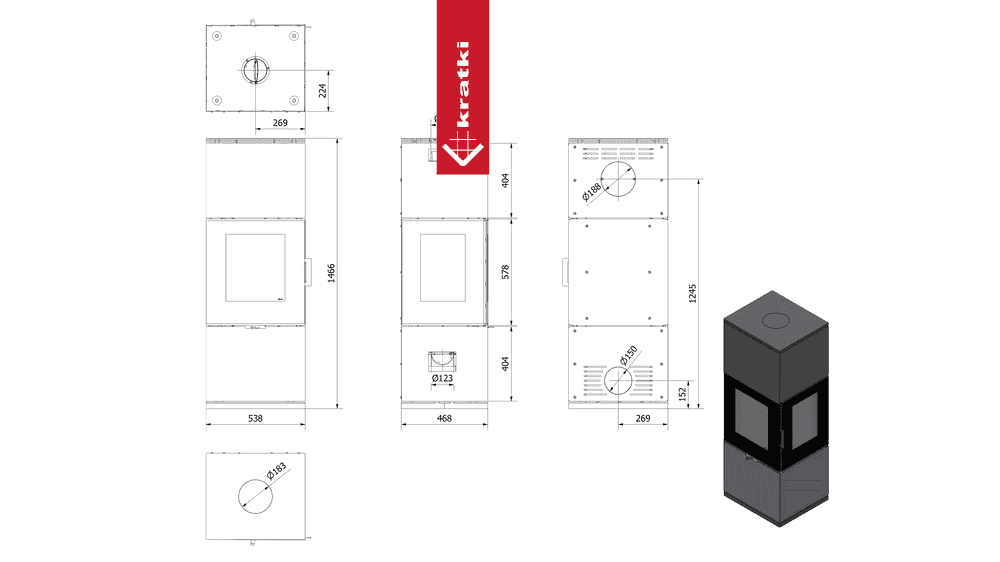 ÚvodKrby a krbová kamnaKrbová kamnaPiec stalowy KRATKI INGA 8 kW Ø 150 z domykaniem w standardzie z czarnym