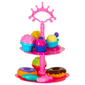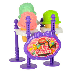 Sada obsahuje mnoho hracíchprvků: zmrzlinu,zákusky, ale i kelímek,tác, stojan na zmrzlinu, lžičku na zmrzlinu a další doplňky, které naplní každou hru fantazií a chutí. Pro doplnění je k dispozici barevnýubrus, na kterém lze minicukrárnu naaranžovat.