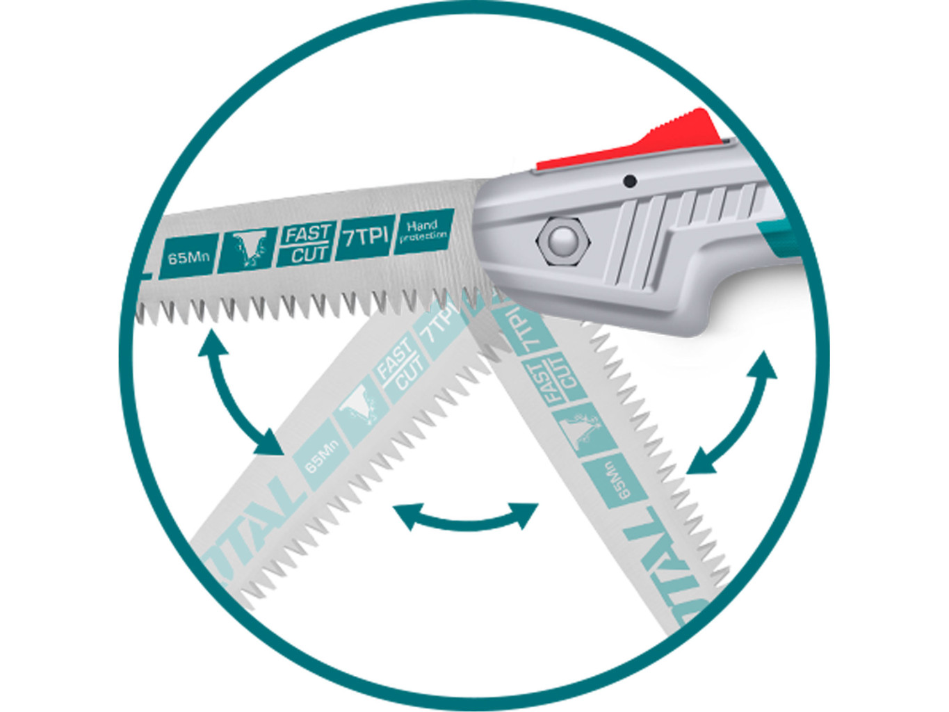 Dotaz na produkt180mm dlouhá skládací pila. Materiál 65Mn. Standardní zuby 7TPI, trojité zuby (přesně broušené 3hranné zuby), fast cut.