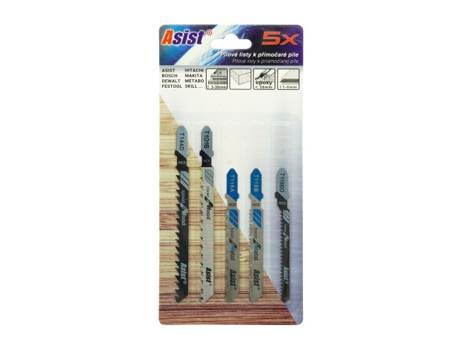Základní sestava pilek do přímočaré pily, univerzální úchyt pro všechny značky přímočarých pil s uchycením T, pro řezání dřeva, plastu, železa, rovné řezy i vykružování. Nesmí chybět v každé dílně.
