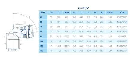 - materiál tvarovky PP-CO-MV (směs polypropylenového kopolymeru a minerálního polypropylenu)