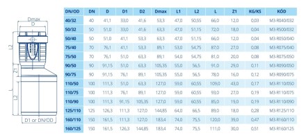 - materiál tvarovky PP-CO-MV (směs polypropylenového kopolymeru a minerálního polypropylenu)