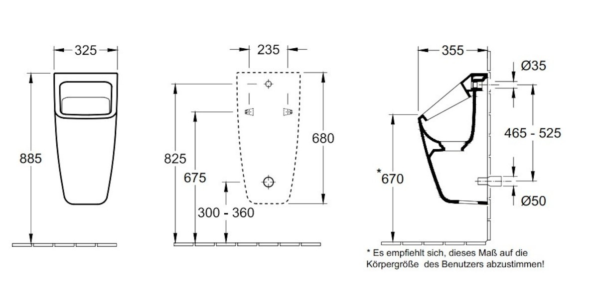 PARAMETRY:Hmotnost balení: 25,00  kgDruh výrobku: pisoár Materiál: keramika Barva popisná: bílá Barva základní: bílá Design: hranatý lesk/mat: lesk Šířka: 33  cmVýška: 68  cmHloubka: 35,5 ...