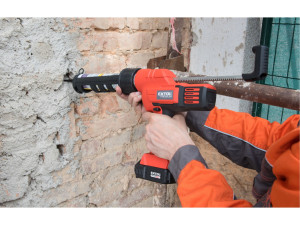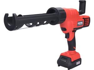 Dotaz na produkt Na splátky ještě dnesAku vytlačovací vaničková pistole je určena k vytlačování silikonu, chemických kotev apod. z kartuší. Rychlost posuvu lze nastavit na 6polohovém regulátoru v rozsahu 50-560mm/min, což umožňuje přesnou regulaci toku hmoty. Silný motor a převody vyvinou tlak až 2000N tlačné síly. Pistole má funkci ANTI-DRIP, která po zastavení pistole automaticky popojede nazpátek a díky tomuto uvolnění tlaku v tubě, nepokračuje vytlačování hmoty. Pro zrychlení práce není zpětný chod motorizovaný, ale jen rychle povytáhnete píst. Vaničku je možno otočit v rozsahu 360°. Stroj je vybaven ochrannou proti přetížení. Rukojeť je pokryta měkkou protiskluzovou gumou, která snižuji vibrace a dobře se drží. Přímo nad baterií je umístěno osvětlení, které osvětluje pracovní místo. Pro běžnou práci dostačují jeden nebo dva 2000mAh akumulátory, které můžete rychle nabít v rychlonabíječce, pro náročnější nebo delší práci doporučujeme větší akumulátory s kapacitou 4000–8000mAh. Akumulátor lze použít ve všech typech nářadí řady EXTOL SHARE20V. Díky použité Li-ion technologii je ho možné kdykoliv dobíjet, aniž by se tím snižovala jeho kapacita. Li-ion akumulátor ztrácí energii vlivem samovybíjení velmi pomalu a vydrží dlouho nabitý a připravený k použití.