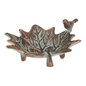 Dotaz na produktKovové pítko ve tvaru javorového listu s roztomilým ptáčkem je nejen praktickým místem pro osvěžení ptactva, ale i krásnou dekorací. Měděná barva s jemnou patinou mu dodává přirozený, lehce vintage vzhled. Skvěle se hodí na parapet, stůl nebo jiné vhodné místo na zahradě, balkoně či terase.