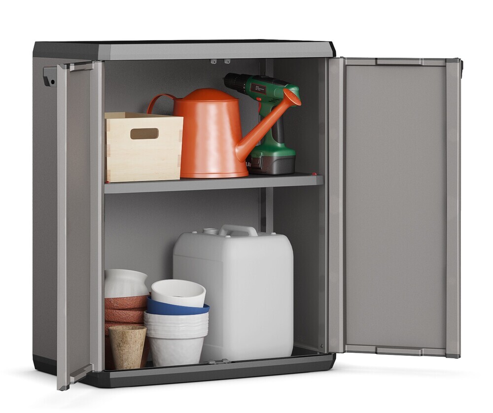 Dotaz na produkt Na splátky ještě dnesOdolná dílenská skříň vhodná do garáže, na chatu, na terasu nebo do sklepa. Pevné panty, možnost uzamčení a odolnost skříně patří mezí její přednosti. Díky praktickému designu zapadne téměř do každého prostoru a poskytne úkryt pro mnoho pomůcek, nářadí a vybavení. Snadná údržba. Nastavitelná police s nosností každé z nich 15 kg. nízká skříň 1 nastavitelná police nosnost police 15 kg velká odolnost