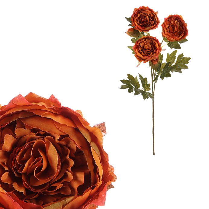 Dotaz na produktUmělá řezaná pivoňka s bohatými oranžovými květy a jemnými poupaty vypadá jako právě natrhaná ze zahrady. Realisticky zpracovaný stonek s lístky dodává rostlince přirozený vzhled, díky kterému krásně vynikne samostatně ve váze, ale může být součástí i větších květinových kompozic. Nadčasová dekorace, která si uchová svou krásu napořád a vnese do interiéru i venkovních prostor nádech romantiky.