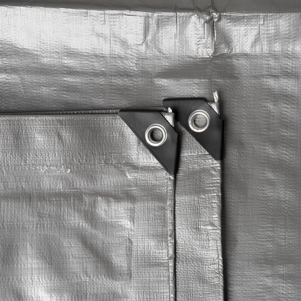Dotaz na produktStříbrné extrasilné plachty Procraft jsou určeny k zakrytí materiálů, stavebních strojů, nářadí, vozíků, dřeva, slámy, bazénů proti nečistotám, dešti v náročných povětrnostních podmínkách.Plachta se uchycuje pomocí kovových ok, která jsou rozmístěna po 1metru v zesíleném okraji a v rozích jsou ještě více vystuženy plastovou vložkou, umožňují tak jednoduché a rychlé zajištění před povětrnostními vlivy. Plachty jsou vyrobeny z polypropylenu s gramáží 200 g/m2, pokryté vrstvou polyetylénu s UV filtrem a tím zvyšuje její životnost.