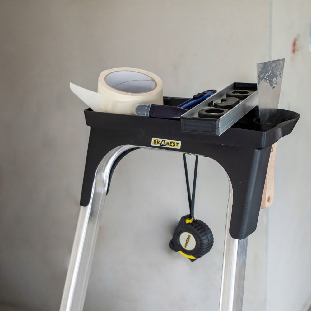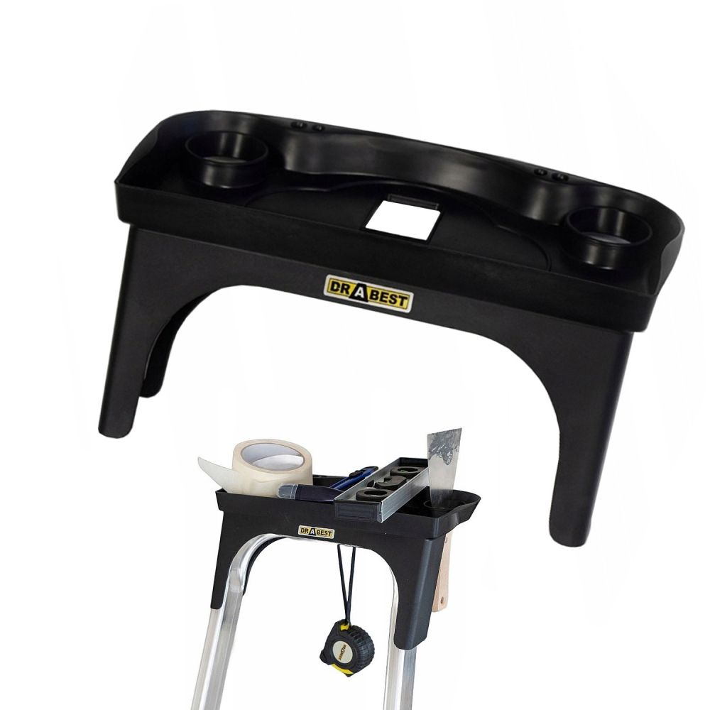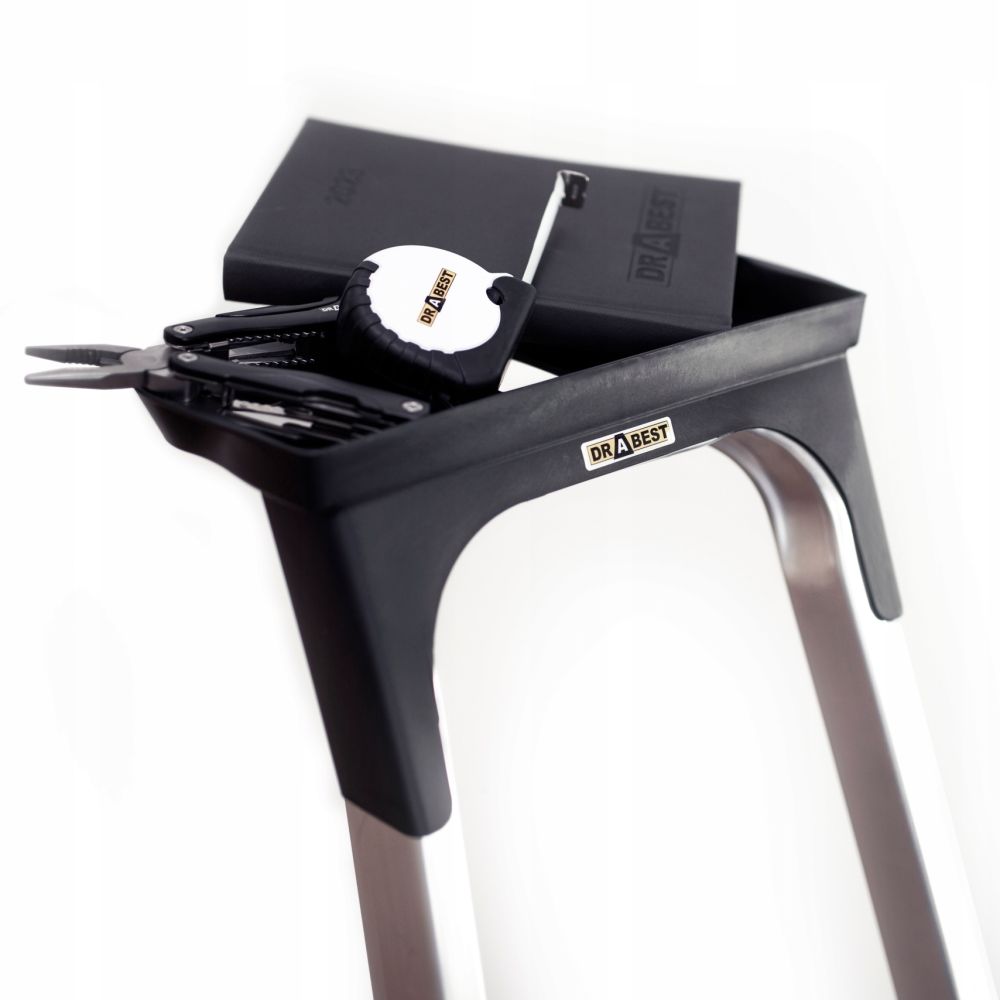 Výhodou modelu DRABEST AK-PN je jeho univerzální kompatibilita s většinou běžných schůdků na trhu. Vyroben je z pevného a odolného plastu, který zajišťuje dlouhou životnost i při častém používání. Instalace je velmi jednoduchá – stačí jej nasadit na schůdky a zajistit šroubem k profilu. Tento nástavec je nenahraditelný pomocník, který promění vaše schůdky v multifunkční pracovní stanici.