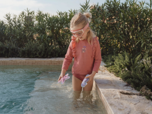 Plavky z UV ochranné tkaniny s krásnou výšivkou chrání vaše dítě před sluncem při koupání u moře i doma na zahradě. Ať už vaše děti milují skákání ve vlnách, koupání v bazénu nebo si rády staví hrady z písku, v těchto plavkách si mohou bezstarostně užívat celý den.