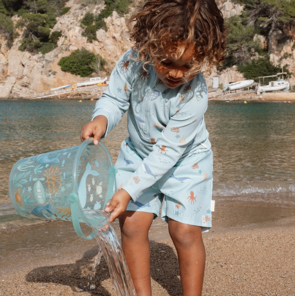 Plavky s krásným potiskem chrání vaše dítě před sluncem při koupání u moře i doma na zahradě. Ať už vaše děti milují skákání ve vlnách, koupání v bazénu nebo si rády staví hrady z písku, v těchto plavkách si mohou bezstarostně užívat celý den.