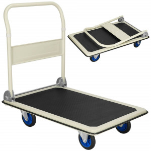 Transportní vozík se sklopným madlem pro přepravu těžkých a objemných nákladů do hmotnosti 300 kg. Kovová plošina s protiskluzovým povrchem, gumová kolečka. Vyztužená konstrukce, sklopné madlo, ergonomická rukojeť, celoobvodový gumový nárazník. Snadno ovladatelný i při plném zatížení. Ideální pro sklady, hotely, obchody, dílny a další provozovny. Rozměry plošiny 90x62 cm, výška madla 87 cm.