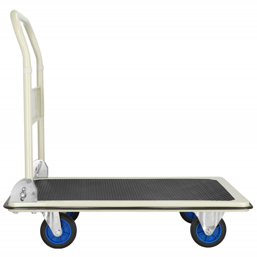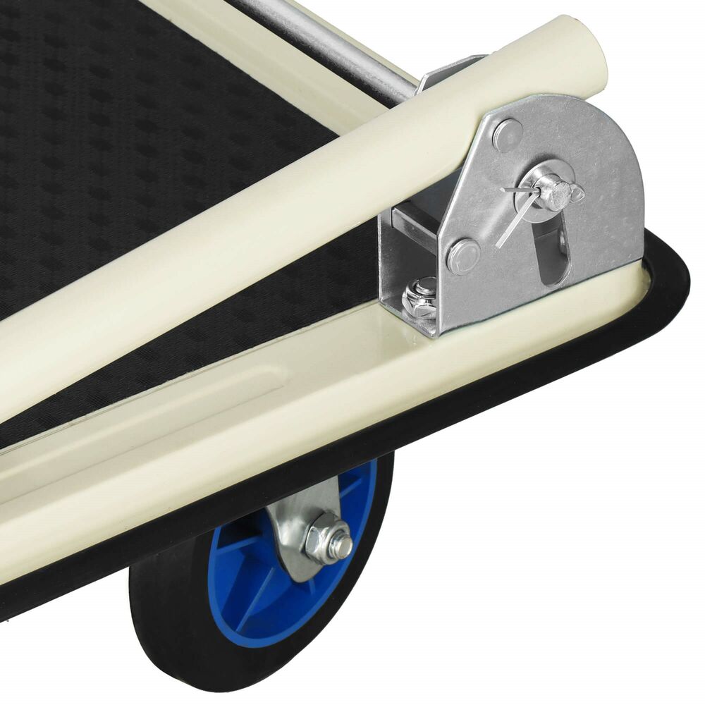 Plošinový vozík Springos GA0016 najde využití všude tam, kde je potřeba převážet těžké a objemné věci. Transportní vozík je vybaven robustní ocelovou plošinou s protiskluzovým povrchem, která zabraňuje pohybu nákladu během přepravy. Po celém obvodu má gumový nárazník. Ten účinně absorbuje případné kolize a výrazně zvyšuje životnost výrobku. Nosnost vozíku činí 300 kg rovnoměrně rozloženého nákladu.
