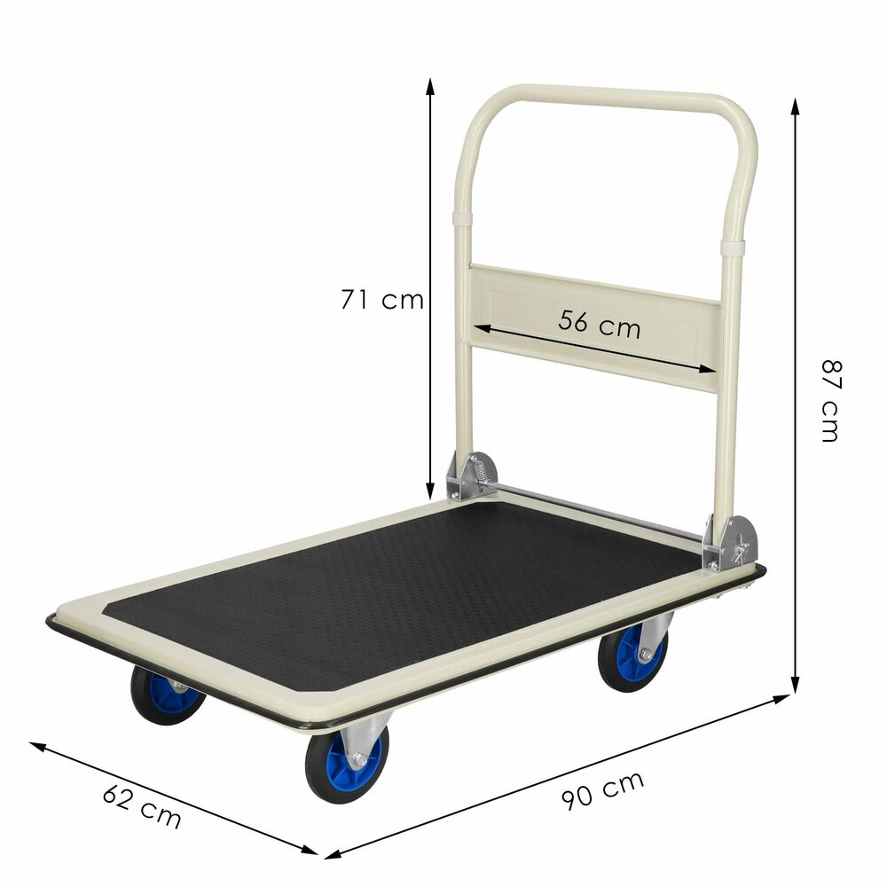 Dotaz na produkt Na splátky ještě dnesTransportní vozík se sklopným madlem pro přepravu těžkých a objemných nákladů do hmotnosti 300 kg. Kovová plošina s protiskluzovým povrchem, gumová kolečka. Vyztužená konstrukce, sklopné madlo, ergonomická rukojeť, celoobvodový gumový nárazník. Snadno ovladatelný i při plném zatížení. Ideální pro sklady, hotely, obchody, dílny a další provozovny. Rozměry plošiny 90x62 cm, výška madla 87 cm.