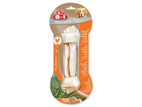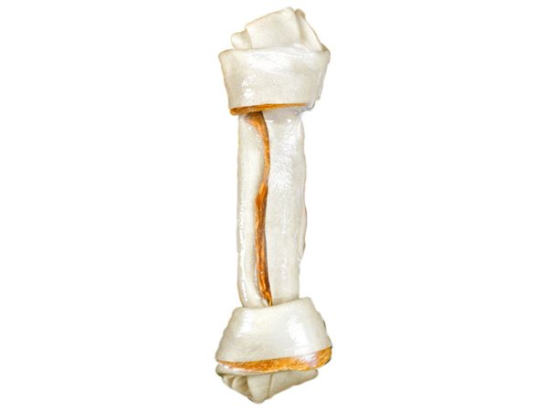 Dotaz na produktŽvýkací kost s se sušeným kuřecím masem uvnitř, doplňkové krmivo pro dospělé psy od 20 do 40 kg hmotnosti.