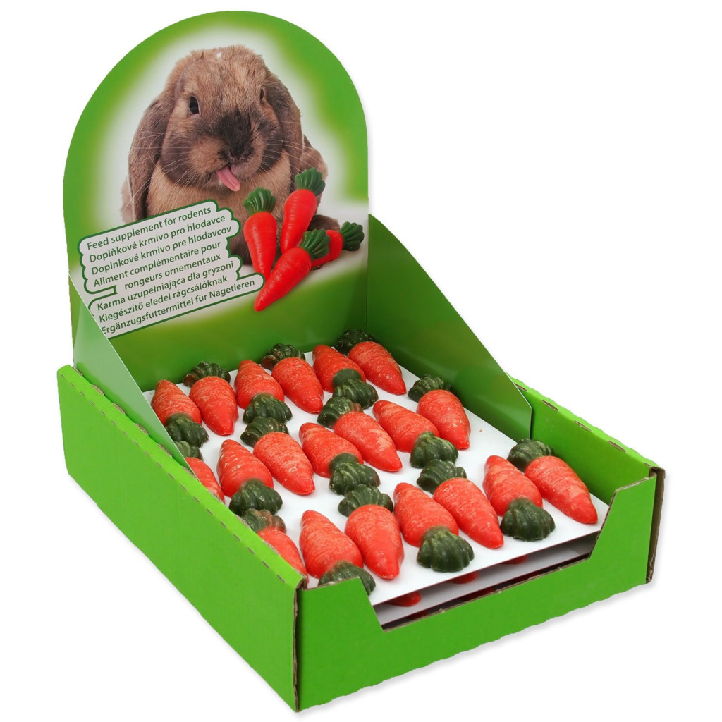 Dotaz na produktSušenky ve tvaru mrkviček pro hlodavce.