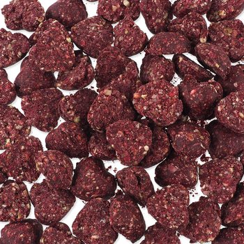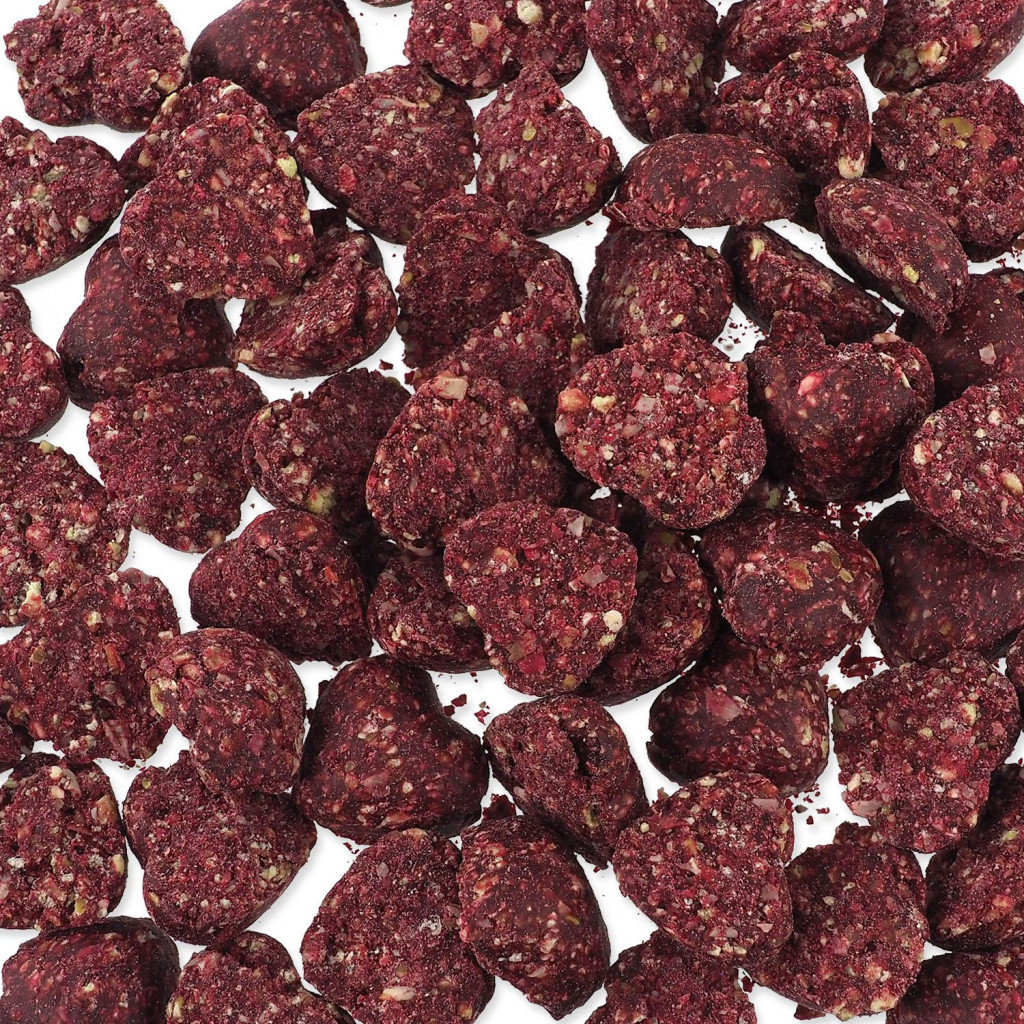 Složení: sušený hrách, sušená červená řepa 10 %, rostlinný škrob.