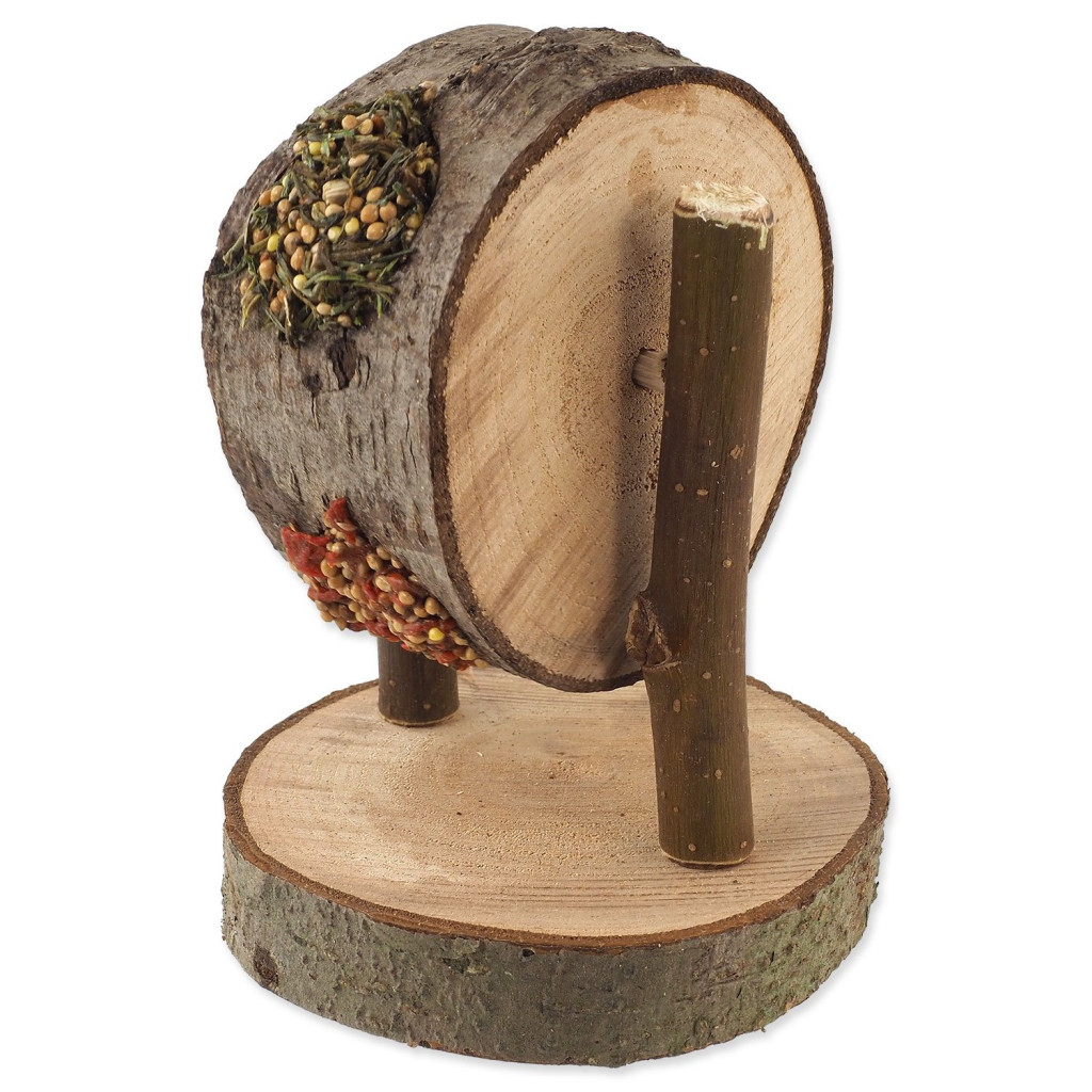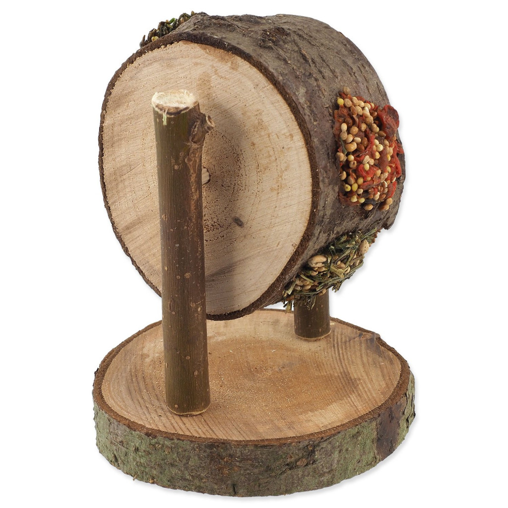 Dřevěné kolo je naplněno chutnou směsí s mrkví a petrželí. Váš mazlíček se při vykusování náplně zabaví a zároveň okus dřeva pomáhá přirozené péči o zuby.