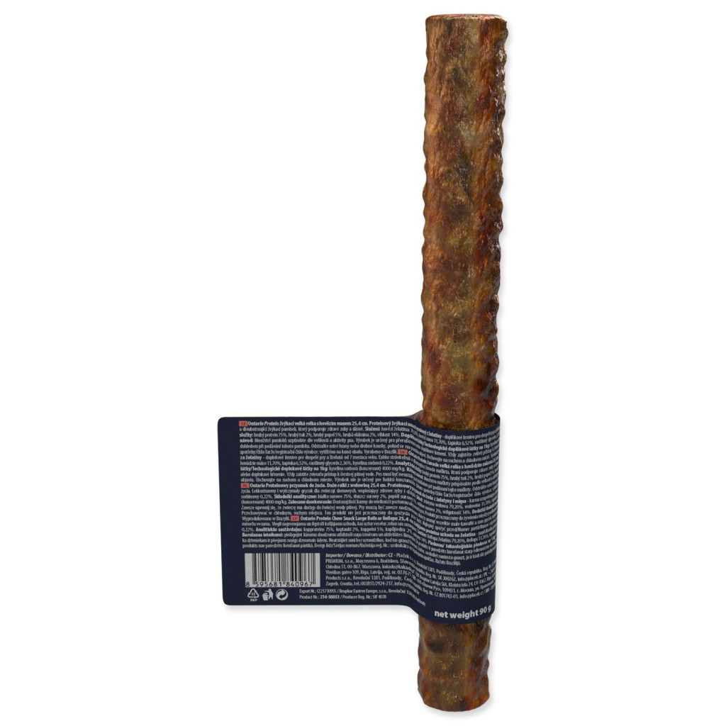 ÚvodChovatelské potřebyPsiKrmivoPochoutka Ontario Protein hovězí, žvýkací rolka velká 25,4cm