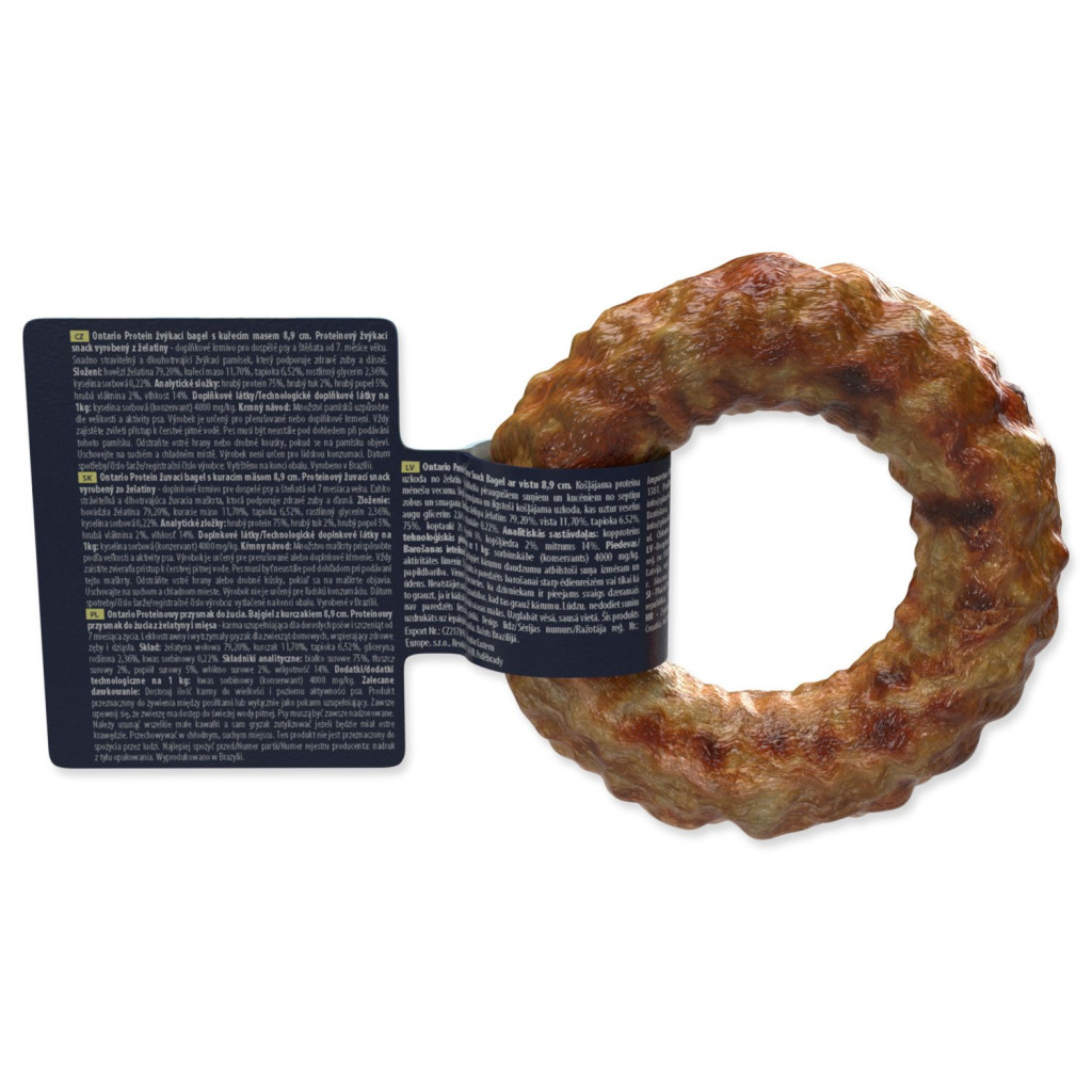 Dotaz na produktDopřejte svému psu zábavu v moderním stylu. Ontario Protein kuřecí bagel kombinuje oblíbenou drůbeží chuť s hravým tvarem kolečka. Tento pamlsek pomáhá masírovat dásně a zpevňovat čelist. Díky tvaru kolečka vydrží pejskovi ještě déle. Obsažený kolagen se postará o to, aby vazy a klouby vašeho psa byly připraveny na každý společný běh nebo hru.