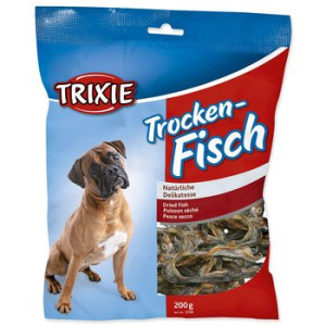 Dotaz na produktDoplňkové krmivo pro psy. Podávejte jako odměnu nebo pamlsek. Sušené rybičky obsahují minerální látky, bílkoviny a stopové prvky.