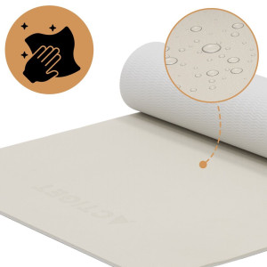 Podložka na cvičení 183x61 cm 6mm TPE ACTIGET ACT0025 béžová poskytuje ideální rovnováhu mezi komfortem a stabilitou při každém pohybu. Protiskluzový povrch zajišťuje bezpečné provedení cviků a pomáhá udržet správnou polohu těla. TPE materiál je příjemný na dotek, pružný a zároveň dostatečně pevný, aby poskytl spolehlivou oporu při cvičení, józe i pilates.