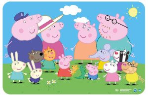 Podložka na stůl s motivem Peppa Pig. Rozměry: 43 x 28 cm. Materiál: 100% PVC. Slouží jako jídelní podložka nebo ochrana stolu při psaní, malování či hraní. Chrání povrch stolu před poškrábáním, nečistotami a skvrnami. Je vyrobena z lehce omyvatelného plastu, konkrétně 100% PVC. Rozměry se pohybují kolem 43 x 28,5 cm. Je vhodná pro děti od 3 let. Výrobce: WO products 6900 Zevenar Nizozemí info@wo-products.nl