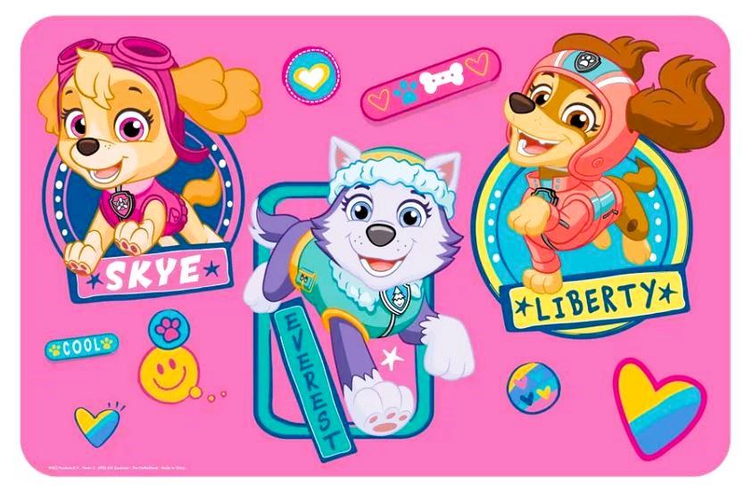 Podložka na stůl s motivem Tlapková patrola. Rozměry: 43 x 28 cm. Materiál: 100% PVC. Slouží jako jídelní podložka nebo ochrana stolu při psaní, malování či hraní. Chrání povrch stolu před poškrábáním, nečistotami a skvrnami. Je vyrobena z lehce omyvatelného plastu, konkrétně 100% PVC. Rozměry se pohybují kolem 43 x 28,5 cm. Je vhodná pro děti od 3 let. Výrobce: WO products 6900 Zevenar Nizozemí info@wo-products.nl