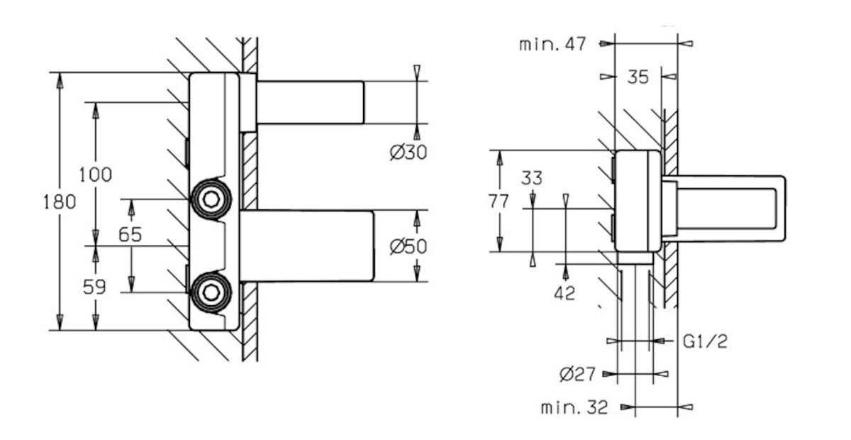 HANSAVARIO podomítkové těleso, DN 15 pro 2 otvorové nástěnné pákové baterie • bez sady pro konečnou montáž • těleso: mosaz neuvolňující zinek (MS 63) • (-) zaizolováno v polystyrenovém obalu • zpevňovací úhelník jako příslušenství 59913086 Pro kompletní jednotku objednejte prosím podomítkové těleso a sadu pro konečnou montáž