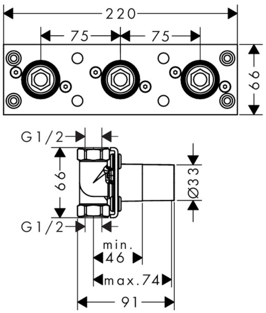 ÚvodKoupelnaKoupelnové bateriePříslušenství pro vodovodní bateriePodomítkové těleso Hansgrohe bez baterie 13129180