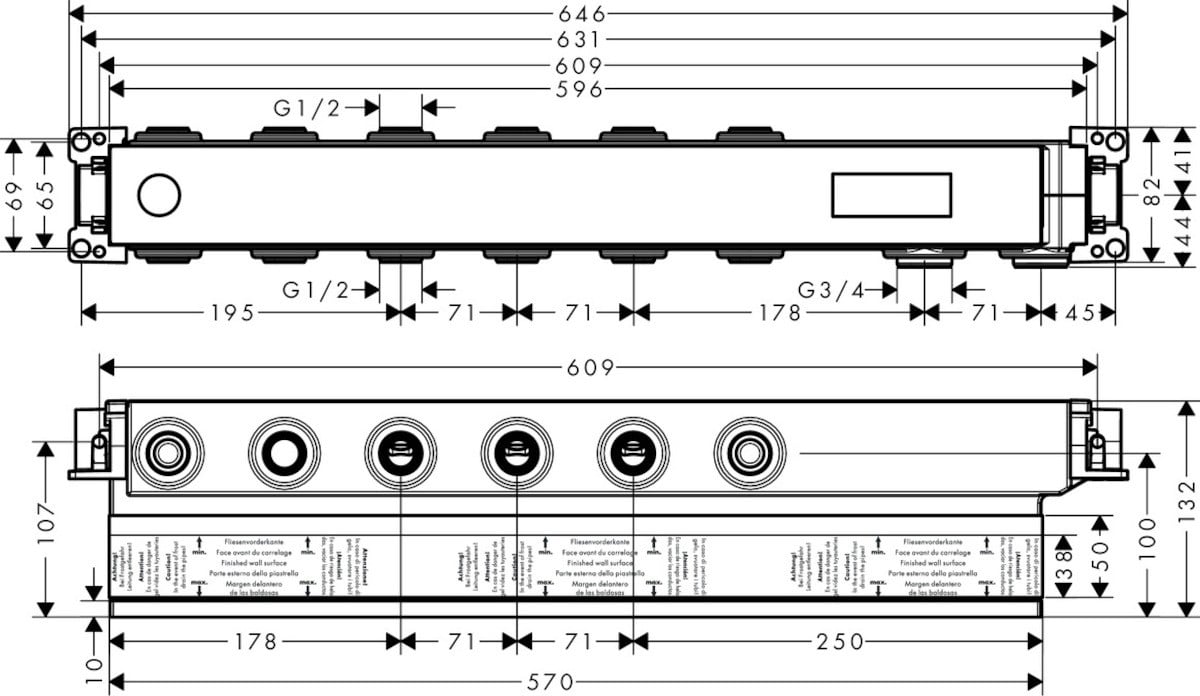 Základní těleso se připojuje k přívodům vody prostřednictvím spojovacího závitu Rp ¾ (DN15/DN20)Montáž se provádí vodorovně s hloubkou instalace 87 až 122 mmZvukově oddělené a vodotěsné pouzdro uvnitř je nejlepší volbou pro komfortní a bezpečné používáníOsvědčené základní těleso hansgrohe k instalaci termostatu RainSelect se čtyřmi funkcemiTěleso se montuje do vodorovné polohy. Hloubka instalace: 87–122 mmTěleso se montuje do vodorovné polohy. Hloubka instalace: 87–122 mmTichý provoz: Vestavěný tlumič hluku redukuje šum proudění vody – pro extra tichý provoz.Součásti dodávky: základní těleso, těsnicí příruba, montážní návodVšechny součásti jsou vyrobeny z vysoce kvalitních materiálů – pro větší bezpečnost a dlouhodobé užívání v domácnosti.Historie hansgrohe od roku 1901 – prémiová značka výrobků pro koupelnu a kuchyňProdloužená pětiletá záruka* na produkt, vyrobený podle nejvyšších kvalitativních standardů *(viz www.hansgrohe.cz/zaruka)PARAMETRY: