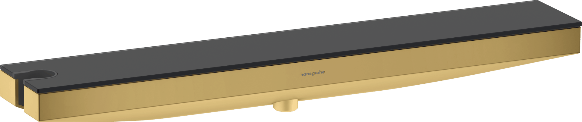 50 cm dlouhá polička zasklená bezpečnostním sklem poskytuje spoustu místa pro přípravky k péči o tělo. Praktické: držák má uvnitř zabudovaný přívod vody pro sprchovou hadici. Zabudovaný držák na sprchovou hlavici je umístěn nalevo, aby mohla být ruční sprcha vždy na dosah. Do držáku pasují všechny sprchové hadice s kónickou maticí. K zajištění celkového harmonického vzhledu doporučujeme hadici se zlatou povrchovou úpravou. Hladká povrchová úprava umožňuje snadné čištění police, jejíž krásný vzhled tak déle vydrží.
