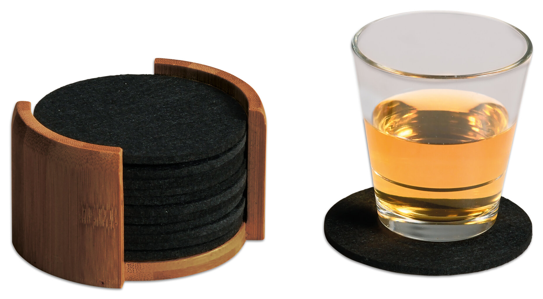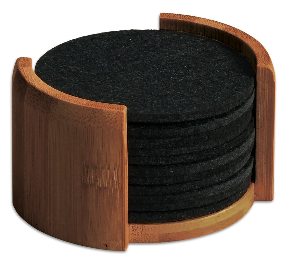 Dotaz na produktPodtácky 12 ks, ø 10 cm, bambus/plsť, černé KESPER