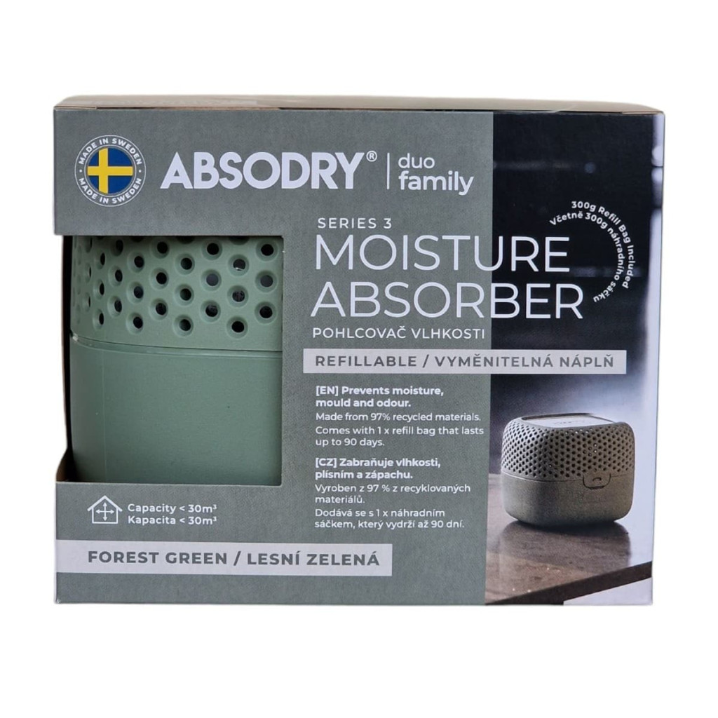 Vlhkost se netvoří jen v malé koupelně či kuchyni, ale i ve větších prostorách většinou starších domů či bytů. Pohlcovač vlhkosti Everbrand Duo Family je navržený pro prostory až 50 m3, což je v přepočtu cca 25 m2. Pokud je váš prostor výrazně větší, můžete použít model Absodry Maxi, který je určený pro místnosti až o objemu 105 m3.