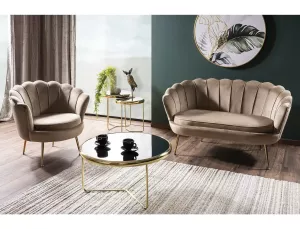 Dotaz na produkt Na splátky ještě dnesPohovka, látka Bluvel, barva: béžová 28, rám: kov, barva: zlatá. Rozměry pohovky: A - 77, B - 135, C - 44, D - 55, E - 76, F - 25 cm.