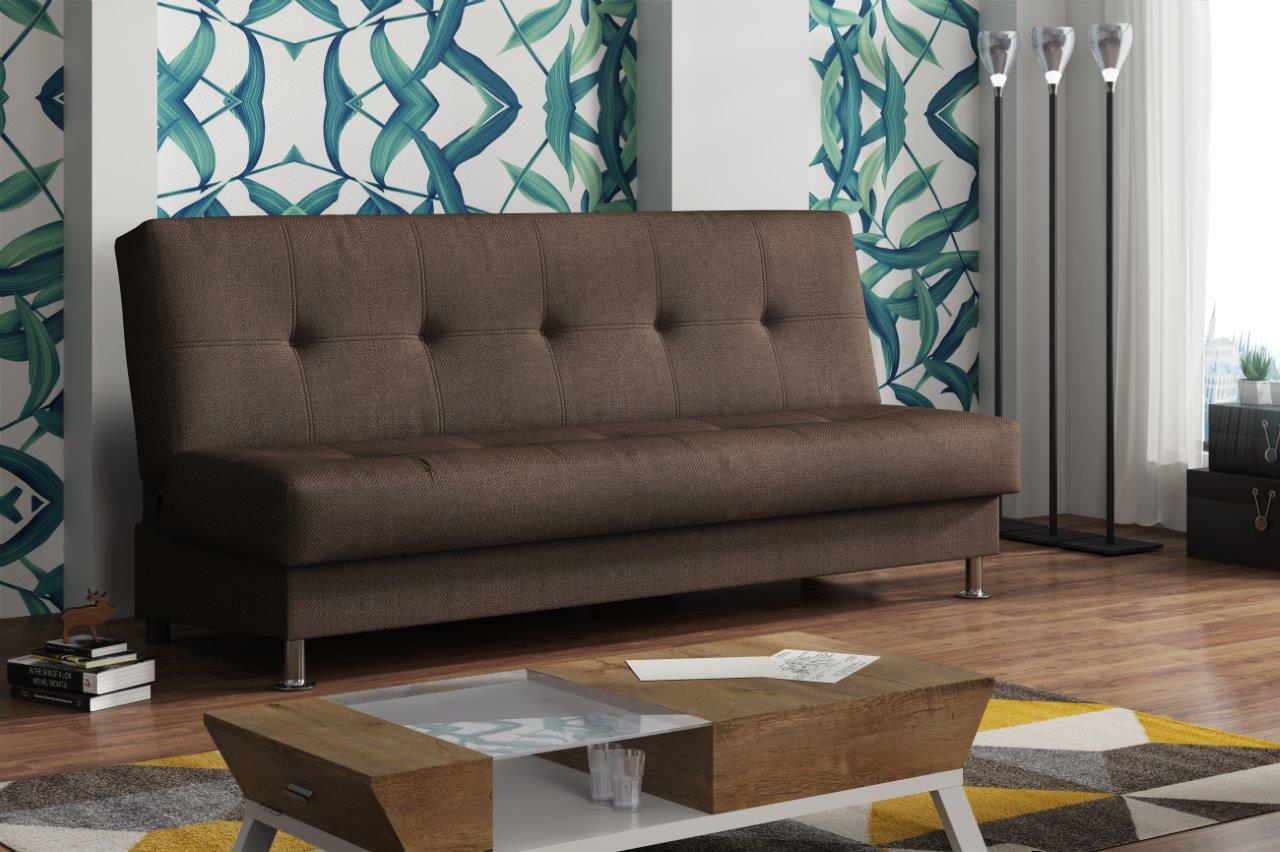 Pohovka má jednoduchý, nadčasový design s dekorativním prošitím a vtahy na sedáku i opěráku, které ocení zejména příznivci retro stylu. Díky rozkladu klik‑klak vznikne lůžko pro občasné přespání. Z důvodu tohoto rozkladu je zadní část pohovky očalouněna pouze krycí látkou.